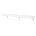 A 120 cm long shelf carries a max. of 20 kg when supported by 3 brackets and a max. of 10 kg when supported by 2 brackets, when properly mounted on the wall.